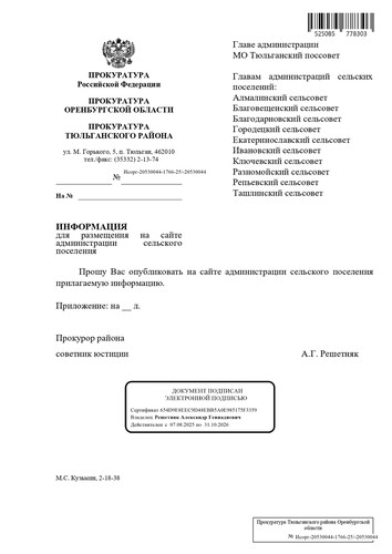 28.01.2026 с 15.00 до 16.00 заместителем прокурора Оренбургской области Крушинским Игорем Борисовичем в п. Тюльган будет проведен личный прием граждан, в том числе социально уязвимых категорий, а также предпринимателей. Мероприятие состоится в здании прокуратуры Тюльганского района по адресу ... Читать дальше » |